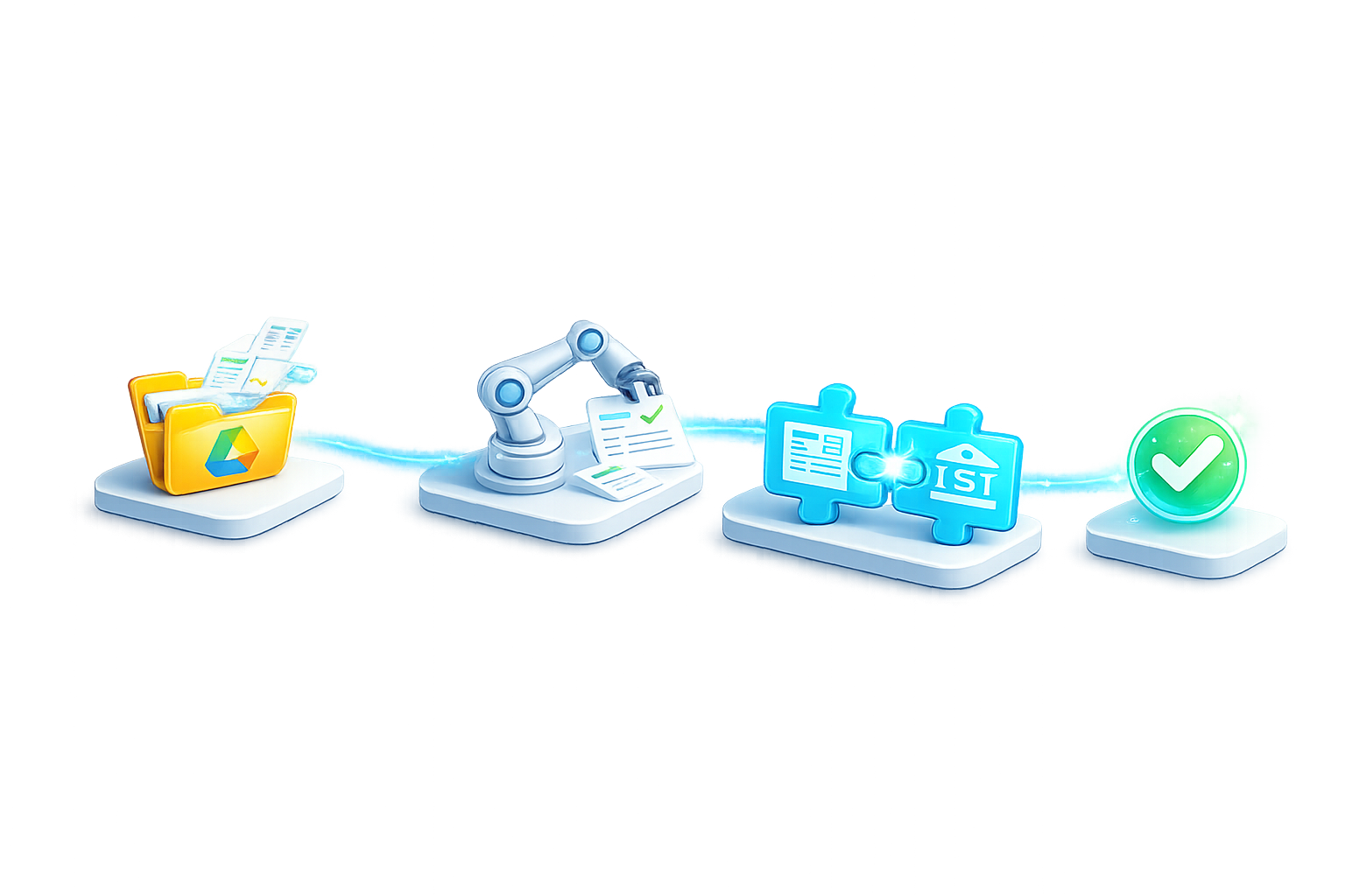 De Google Drive au Grand Livre : classification, saisie, réconciliation bancaire. Automatiquement. Chaque lundi à 8h, pendant que vous prenez votre café.